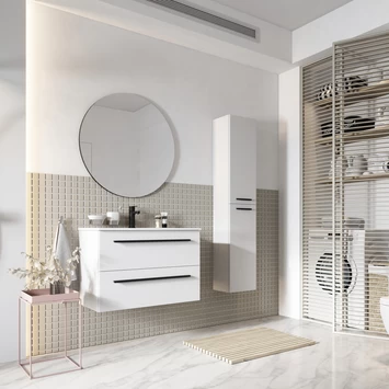 De Atlantic kolomkast Stella Mat Wit past prima bij de badkamermeubelen van de collectie Stella. De hangende kolomkast heeft 2 opbergruimtes en deurtjes met softclose. Wordt geleverd als bouwpakket. Makkelijk te monteren en op te hangen. Combineer met een badkamermeubel van 60 of 80cm. Ook verkrijgbaar in Canela Eiken en mat zwart.