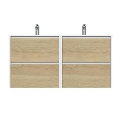 Tiger Reverse Meubelset 2×60 Cm Met 4 Lades Naturel Eik / Mat Wit Inclusief Oval Wastafel Mat Wit