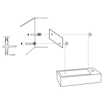 De kraan en de sifon zijn niet meegeleverd. De fontein zelf is gemaakt van licht beton en 38,5×18,5x9cm groot.