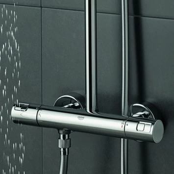 Het oppervlak van de douche wordt niet heet door de geisoleerde Inner WaterGuide. Het zorgt tevens voor een langere levensduur van de glanzende, duurzame GROHE StarLight® chroomlaag. GROHE TwistFree voorkomt het meedraaien van de doucheslang waardoor deze niet kan knikken. De glijstang met verstelbare muursteun QuickFix kun je eenvoudig plaatsen op bestaande boorgaten.