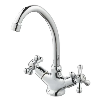 Deze Handson Keukenkraan Louise 2-knops met C-uitloop Chroom is onderdeel van de Handson Louise kranenserie. Kenmerkend voor de Louise-serie zijn de klassieke bedieningsknoppen. Je kunt in deze serie kiezen tussen tweeknops mengkranen of thermostatische kranen. Dankzij de fabrieksgarantie van 5 jaar ben je verzekerd van een goede aankoop. Deze Louise keukenkraan heeft een hoge draaibare uitloop. Door de keramische schijven in de kraan is het makkelijk om de kraan goed dicht te draaien. Een ander groot voordeel is dat kranen met keramische schijven nauwelijks onderhoud vergen. De Handson kranen worden geleverd inclusief aansluitmateriaal. De aansluitmaten van de bijgevoegde flexibele slangen zijn 3/8″.