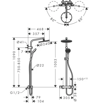 Zoek je een mooi ontworpen regendouche? Ga dan voor de Hansgrohe Regendouche MySelect S 240 met Thermostatische Douchekraan en Handdouche. Met de bijgeleverde Isiflex-doucheslang (gemaakt van kunststof met een metaaleffect) van 160cm en een apart schuifsysteem, is deze regendouche meteen klaar om op je bestaande douche-aansluitingen te monteren. Je kunt de handdouche in hoogte verstellen en is daarom makkelijk en flexibel in gebruik. Voor het grote spoelwerk zet je de ronde hoofddouche met een oppervlak van maar liefst 240mm aan. Met de Select-knop wissel je eenvoudig van straalsoort, bijvoorbeeld een volle regenstraal of de zachte RainAir-variant. De SafetyStop begrenst de thermostaat op 40 graden om ervoor te zorgen dat je nooit meer te heet doucht. Dankzij het Quickclean-systeem in de vorm van flexibele siliconen nopjes, verwijder je kalk met een paar keer wrijven van de douchekop. Kortom: hotelwaardig douchen doe jij voortaan in je eigen badkamer.