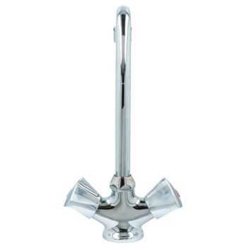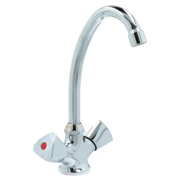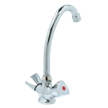 De OK kranen vormen ons basis assortiment. Alle kranen uit deze serie zijn chroom afgewerkt. Deze OK Keukenkraan 2-knops Chroom is voorzien van een tweeknops bediening, waarmee de watertoevoer op een gemakkelijke wijze kan worden bediend. De kraan wordt geleverd met bijbehorend aansluitmateriaal en 2 jaar garantie.