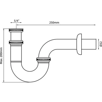 Een elegante en moderne Sanivesk buissifon is perfect voor in de badkamer of toiletruimtes. Aan te sluiten op afvoerbuizen van 32 mm en een afvoer van 5/4″. Het sifon wordt geleverd incl. manchet.