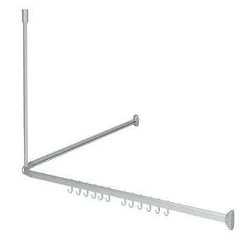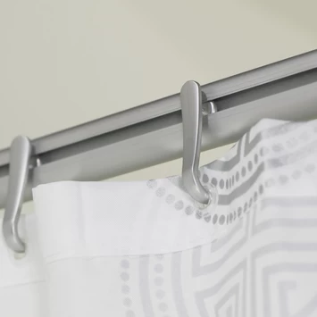 Sealskin Douchegordijnstang Easy Roll Aluminium 90×90 cm is een handig alles in één pakket voor het ophangen van een douchegordijn. Het pakket bestaat uit u-vormige douchestangen met een ingebouwde rails voor de twaalf meegeleverde haakjes en een plafondsteun. De plafondsteun heeft een open stukje waardoor de haakjes met het douchegordijn ongehinderd helemaal van links naar rechts en andersom door de rails geschoven kunnen worden. De stang kan gemonteerd worden rondom een bad van 80×170 of een douche 90x90x90.
