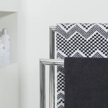 Het Sealskin Handdoekrek Tube Metaal Chroom is een handig dubbel handdoekrek voor in je badkamer. Aan de 2 standaarden hang je gemakkelijk 2 handdoeken op. Met de afmeting van 81 cm hoog, 45,5 cm breed en 19,7 cm diep past dit vrijstaande handdoekrek in vrijwel iedere badkamer en je hebt geen boorgaten nodig om het te installeren. Bovendien kun je het altijd neerzetten waar jij het wil. Dat biedt je een hoop flexibiliteit. Je zet het rek eenvoudig zelf in elkaar met de meegeleverde montagehandleiding. De chromen afwerking van de handdoekhouder past in ieder modern interieur. Wens je toch een andere kleur? De houder kun je ook in wit kopen bij GAMMA. Op het rek krijg je 1 jaar garantie. Het is wel belangrijk dat je de set regelmatig schoonmaakt met een vochtige doek: zo heb je lang plezier van jouw handdoekhouder.