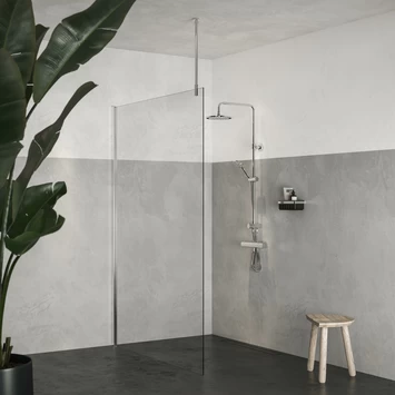 Deze universele plafondsteun van 80 cm kan gebruikt worden om je glazen douchewand van 6, 8 of 10 mm te stabiliseren aan het plafond. Je hebt dan geen horizontale steun nodig. Deze variant heeft een tijdloze zilver hoogglans afwerking. De minimale afstand tussen de bovenzijde van het glas en het plafond is 76 mm. De maximale afstand is 836 mm.
