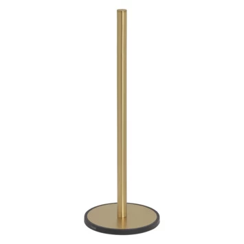 De vrijstaande reserverolhouder uit de Tune serie van Tiger is uitgevoerd in de kleuren geborsteld messing en mat zwart. Met deze houder kun je drie extra rollen toiletpapier opbergen naast je toilet. De Tune serie bevat een groot aantal aanvullende accessoires voor de badkamer en het toilet.