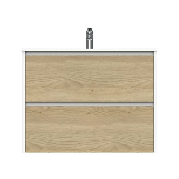 Breng karakter naar de badkamer met de nieuwe Tiger Reverse serie. Reverse is het elegante antwoord op de industriële badkamertrend. Gedurfde lijnen zorgen voor een opvallende, stoere look. De subtiele zijpanelen in wit en de afwerking in naturel eik brengen een stijlvolle sfeer naar je ruimte. Deze greeploze wastafelonderkast van 80 cm heeft 2 softclose lades en is perfect voor het opbergen van je badkamer essentials.
